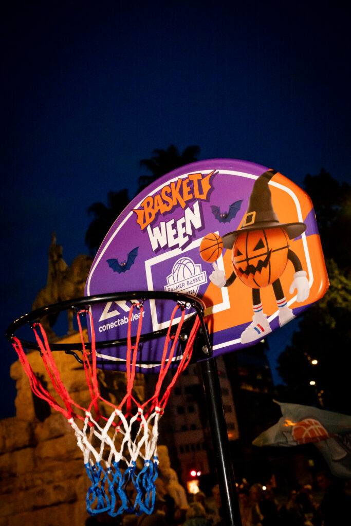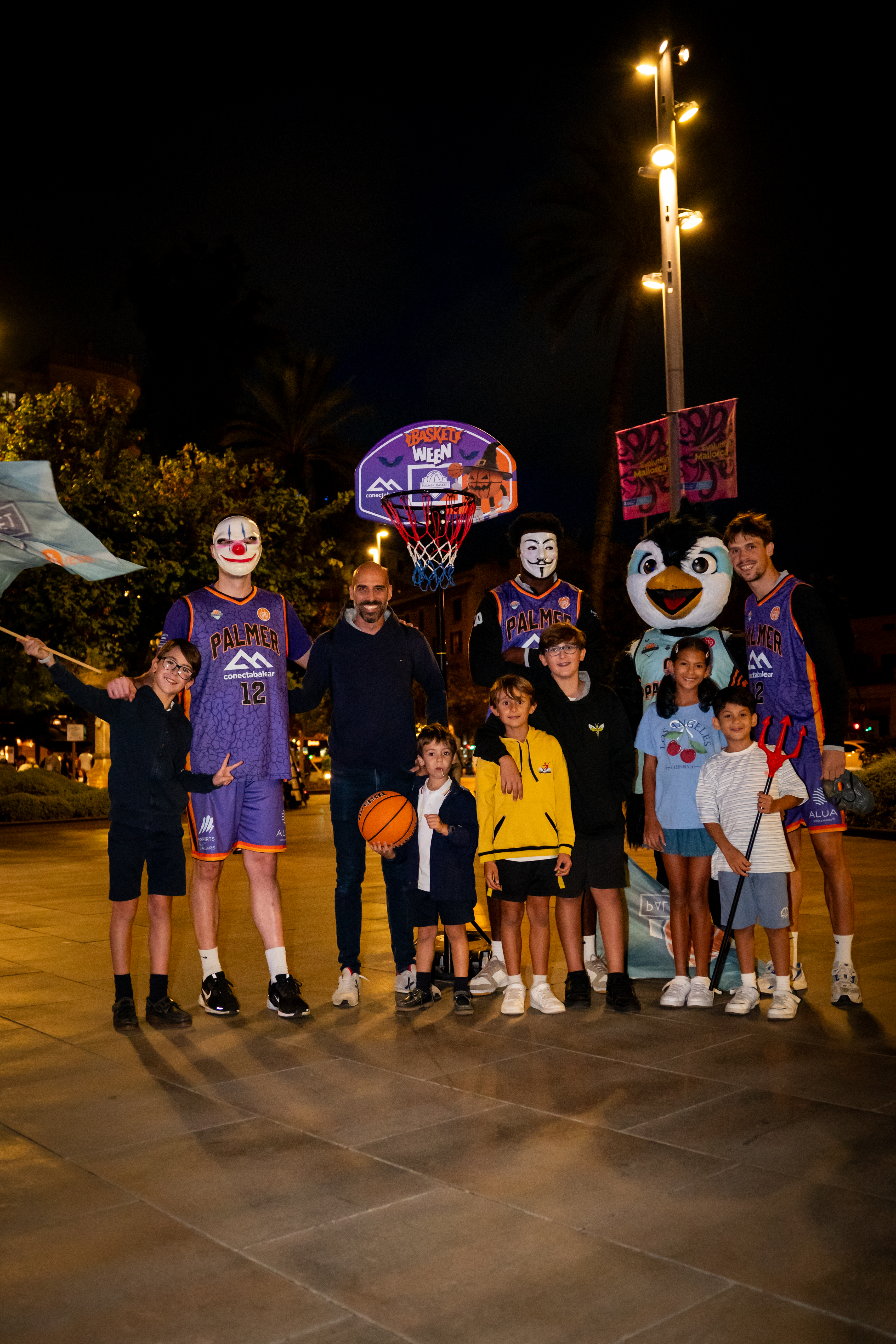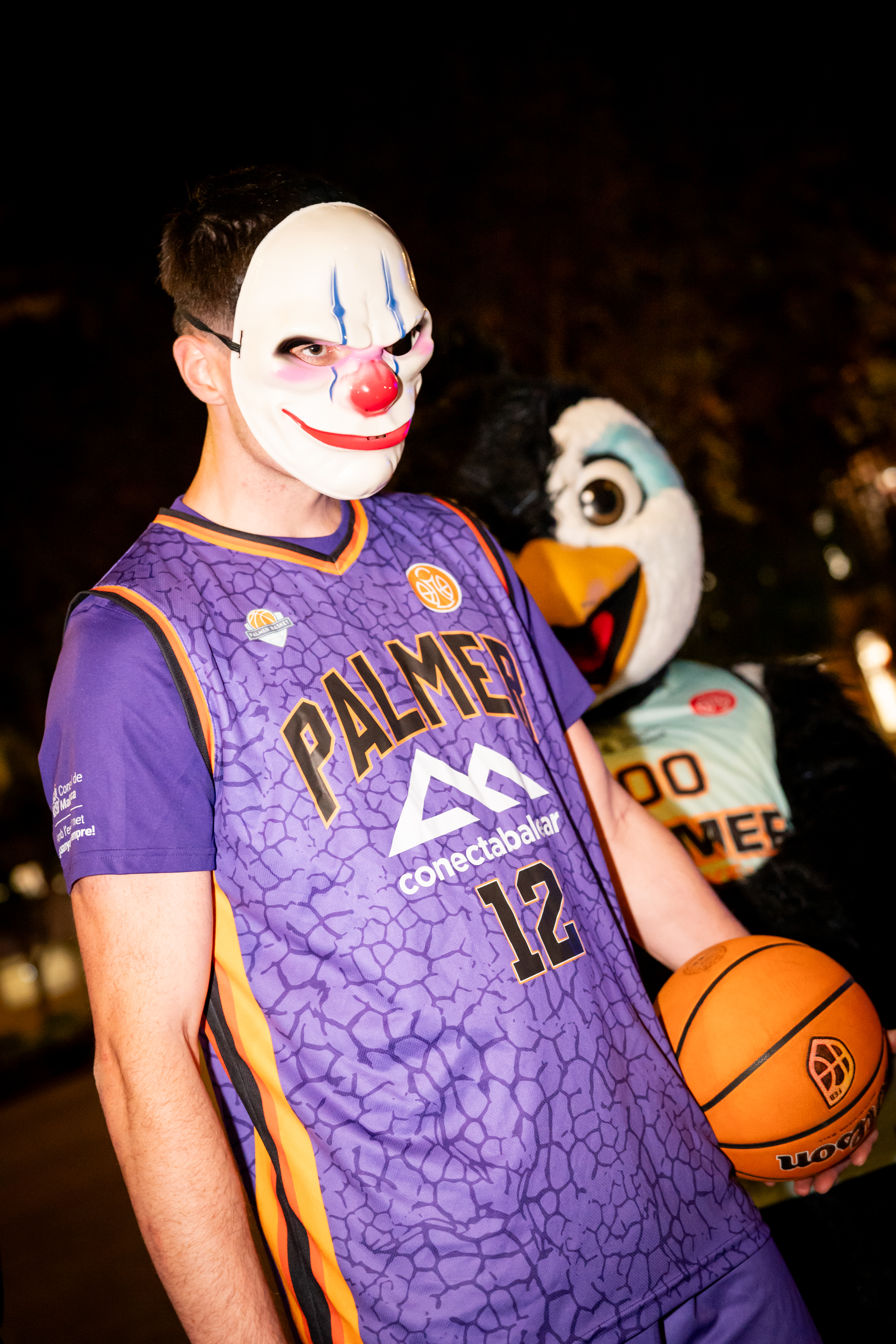 Este Halloween quisimos salir a la calle. Literalmente. Nos fuimos a Plaza España (Palma) junto al Palmer Basket para vivir una tarde diferente, cercana y divertida, llevando el baloncesto directamente donde está la gente. Nos acompañaron tres jugadores del equipo –Nuno Sá, Tray Hollowell y Golden Dike– además de la inseparable Ànima, la mascota que siempre contagia energía. Y sí: nos llevamos también una canasta de baloncesto portátil, porque la conexión, a veces, se construye a pie de calle.